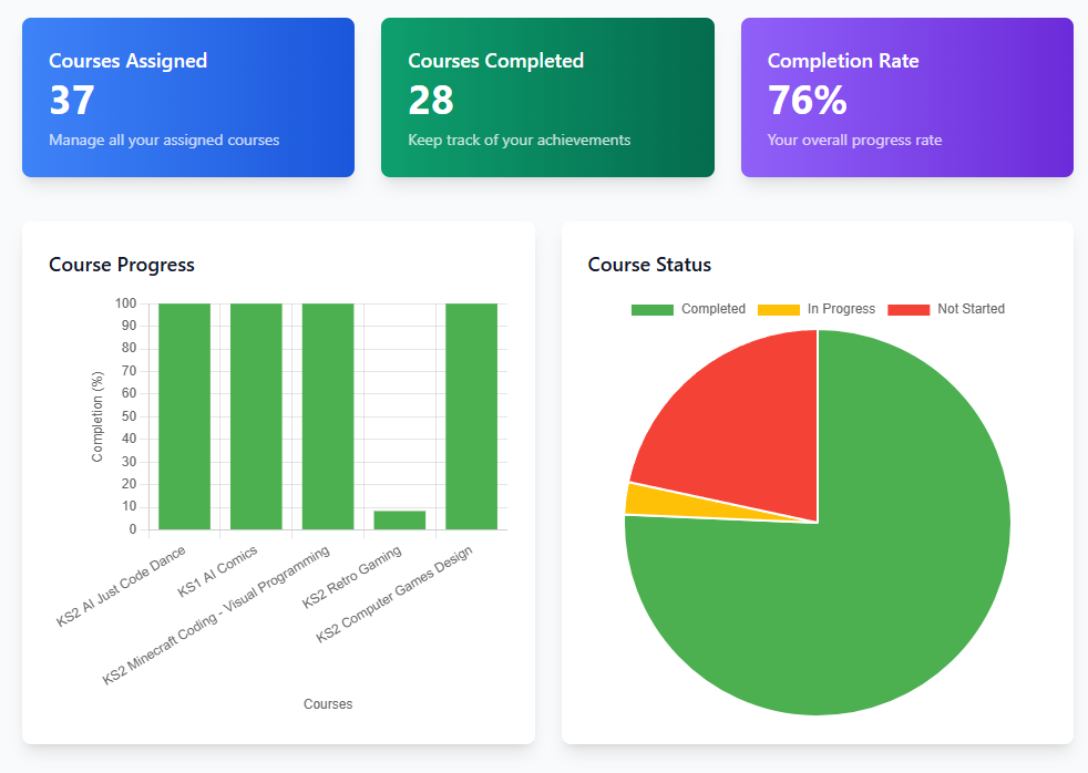 Course creators can build in minutes, learners always know what to do next, and your team gets real-time progress — without the emails, spreadsheets, or confusion.